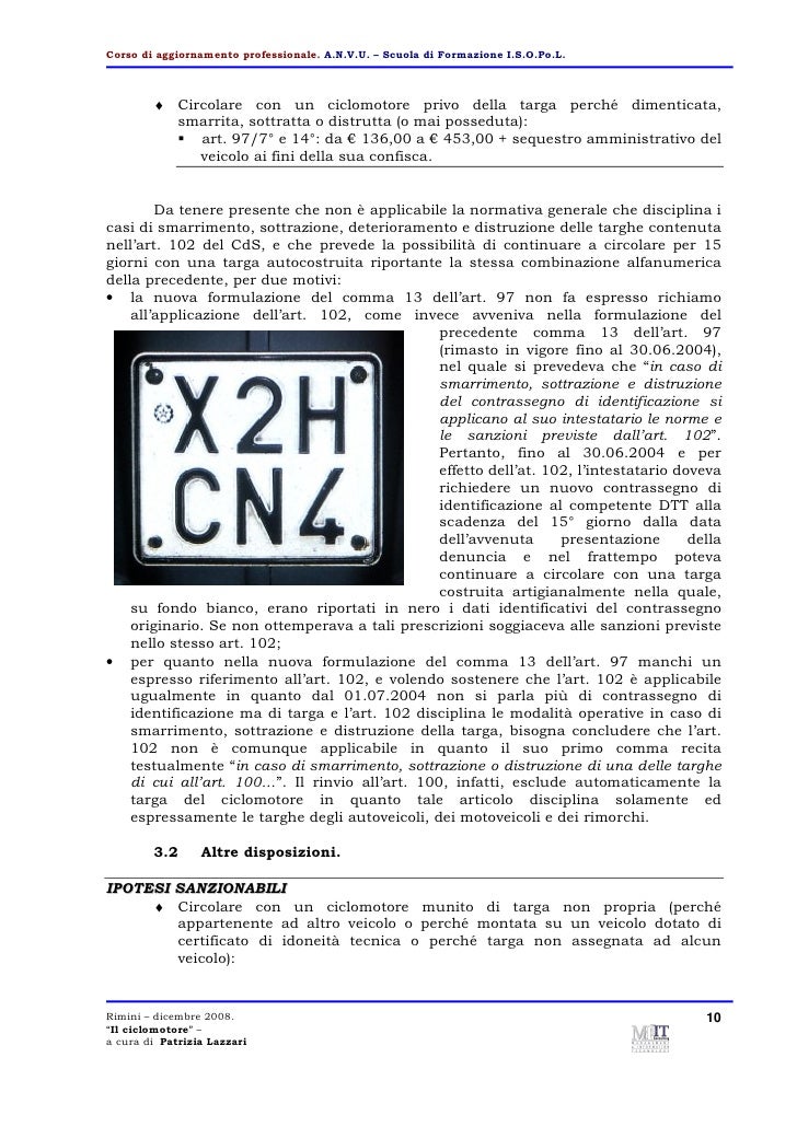 A) la riproduzione del certificato di certificato di idoneita' tecnica di un ciclomotore se durante un controllo di documenti di un ciclomotore. I ciclomotori già in circolazione a quella data, sono dotati di un certificato di idoneità tecnica (il librettino) che il conducente deve portare con se e di un contrassegno di identificazione del ciclomotore (la targhetta) installato nella parte posteriore. Il certificato di idoneità alla guida dei ciclomotori (abbreviato cigc o più comunemente conosciuto come patentino.