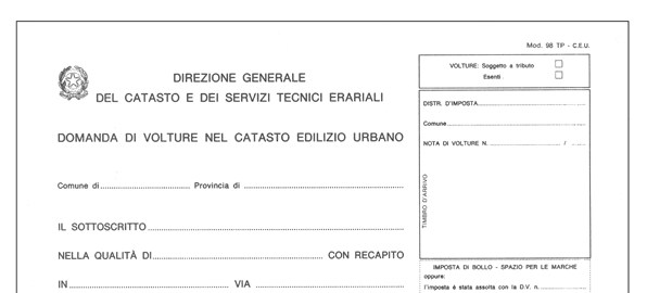 Domanda Di Volture Nel Catasto Edilizio Urbano